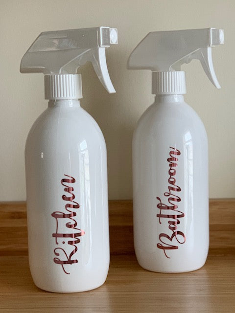 Mrs Hinch Inspired white spray bottles look amazing and can be used to dilute your different household cleaners. They can be personalised with your own choice of words and font in many different colours.. Selection of fonts and colors are available. If you do see a color to your liking feel free to contact us as we always happy to help